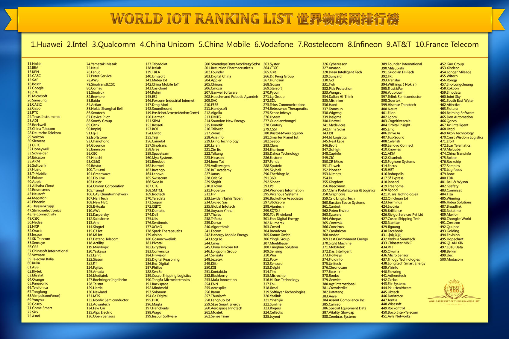 2019 WORLD INTERNET OF THINGS RANKING LIST TOP500